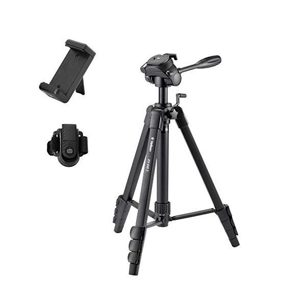 ・170cmクラスの背高で頑丈な中型ファミリー三脚が、スマホホルダーとリモコン付属でより便利に