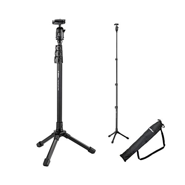・狭い場所でも立てられる便利なカメラスタンド。気軽に持ち運べる軽さが魅力。携帯性重視の自由雲台を装備したモデル。