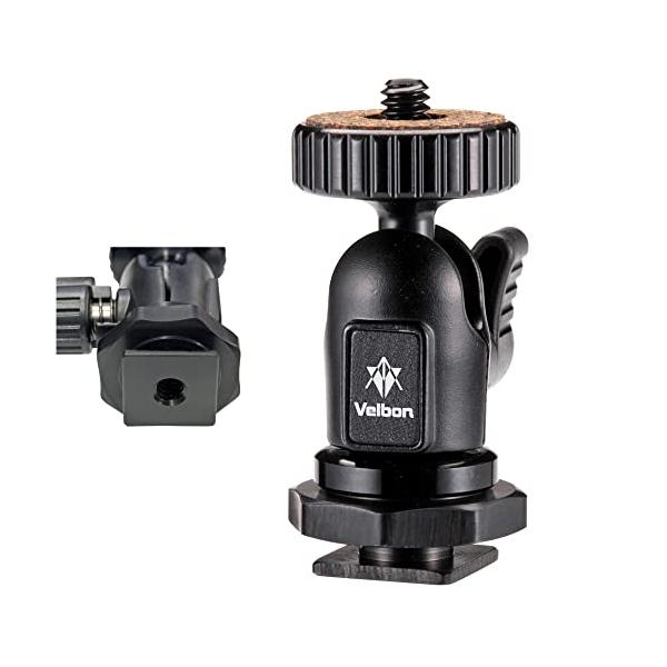 ・カメラのアクセサリーシューに挿し込んで取り付けられる小型自由雲台です。抜け落ち防止のロック機構付き。