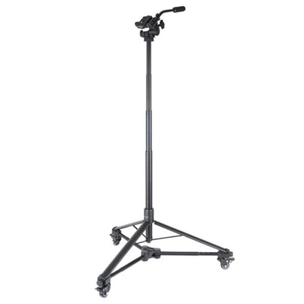 - 移動しながらの撮影や様々なアングルでの撮影が気軽にできる、キャスター付きの軽量ドリーポッド。オイルフリュードタイプの3Wayビデオ雲台搭載。【商品仕様】全高/最低高/縮長:<全高>約1690mm<最低高>:約630mm<縮長(分離時)>三脚(雲台あり):約500mm三脚(雲台なし):約440mmドリー:約340mm段数およびポール径ポール伸縮長:4段、約30/26.5/23.5/20.5mm約1060mm開脚時脚部直径:三脚:約700mmドリー:約750mm質量:全体:約2460g三脚:約1100gドリー:約850g雲台:約510g推奨積載質量:2kg雲台詳細:カメラ台:約45×67mm高さ:約80mm三脚取付ネジ穴:UNC3/8スペアシュー:QB-F64(アルカスイス互換)丸型水準器三脚詳細:雲台取付ネジ:UNC1/4・UNC3/8両対応雲台取付台座径:約36mm付属品:三脚ケース(外寸法:約W450×H140×D100mm)(内寸法:約W440×H130×D90mm)雲台ケース(外寸法:約W320×H180mm)主な材質:三脚・ドリー:アルミ合金、ABS+PC雲台:亜鉛合金、ABS+PC、シリコンゴム付属ケース:ポリエステル雲台ケース:ナイロン発売日:2023年10月移動しながらブレの少ないスムーズな動画撮影や、回り込みながら様々なアングルでの撮影が手軽にできるキャスター付きの軽量ドリーポッド。滑らかな動きで動画撮影に適したオイルフリュードタイプの3Wayビデオ雲台を搭載しています。折りたたみ式でコンパクトに収納でき、ドリーを分離してスタンド単体での使用も可能です。ウルトラロックで素早く高さ調整ポールの伸縮は先端を握ってひねるだけで全段を一気に固定・解除することができる4段構造のウルトラロック方式を採用しています。素早いセッティングが可能なうえ、最大30mm径の太いパイプと高強度の関節部により安定した撮影が可能です。ドリーは簡単に装着・分離が可能ドリーとスタンド脚部の固定・解除はダイヤル式レバーを回すだけの簡単操作。工具を必要とせず手軽に装着・分離できるので、セッティングや撤収も手早く行えます。ドリーの開脚はワンアクションドリー脚部の開閉は両端2本のキャスターアームを左右に開閉するだけのワンアクション。開脚時、折りたたみ時ともに3本の脚がそれぞれの位置にしっかり固定されるロックアップ機構付きです。※使用時はアームを3の位置まで引き出してください。それ以外の位置ではスタンドを確実に固定することができませんのでご注意ください。3Wayビデオ雲台を搭載滑らかでスムーズに動くオイルフリュードタイプのビデオ雲台を搭載。水平・上下・縦位置の3方向を独立して操作・固定できる3Wayタイプで、スチル写真の撮影でも細かい構図の調整が容易におこなえます。カメラを素早く簡単に着脱できるクイックシュー式を採用しています。付属ケースにコンパクトに収納可能スタンドから雲台、ドリーを分離し、専用ケースにコンパクトにまとめて収納することができます。使用しない時の置き場所に困らず、合計しても約2.5kgと軽量で持ち運びが簡単です。雲台は交換可能雲台は、撮影シーンに応じて市販の自由雲台やスマートフォンホルダーなどに交換できます。スタンドの取付ネジ(カメラネジ)は、外側のUNC3/8(太ネジ)を押すとバネで下がり、内側のUNC1/4(細ネジ)が現れるダブルカメラネジ仕様。用途に合わせて様々な種類の雲台を取り付けることができます。スムーズな動きのストッパー付き自在キャスタースムーズに動き、移動撮影が快適に行える自在キャスターを採用。ストッパーを押し込むと回転と車輪の両方が同時にロックされるので、定位置撮影と移動撮影の切り替えも素早く行えます。ブレの少ない滑らかな動画を撮影できるビデオ雲台とスムーズに回るキャスターにより、移動しながらブレの少ない滑らかな動画が撮影できます。被写体と一緒に動きながらの撮影や、被写体の周りを旋回しながらのカメラワークなど、本格的で臨場感あふれる映像表現を可能にします。結婚式やイベント会場での撮影、ライブ中継などにも便利に使用できます。脚が邪魔にならずに被写体に近付けるテーブル上の被写体を撮影する際、通常の三脚のように脚が邪魔になりにくいので、テーブルにぴったりと寄せて被写体に近付くことができます。様々なアングルの写真を手軽に撮影できる様々な方向へスムーズに移動でき、高さ調節も1本のポールだけで簡単に行えるので、向きや高さを変えて回り込みながら色々なアングルの写真を連続して撮影できます。フリマサイトの出品やブログ用の写真なども、手間を掛けずに手軽に撮影できます。可動式タブレットスタンドとしてタブレットホルダー(別売)を装着することで、可動式のタブレットスタンドとして活用できます。高い安定性で、リモート会議やオンラインレッスン、受付案内など様々な用途で快適に使用できます。可動式の照明用スタンドに市販のLEDライトなどをセットして、可動式の照明用スタンドとしても活用できます。スタイリッシュな撮影スタンドにスタンド部は単体でスマートフォンやタブレット用のロングスタンドとして使用できます※。コンンパクトに折りたためて持