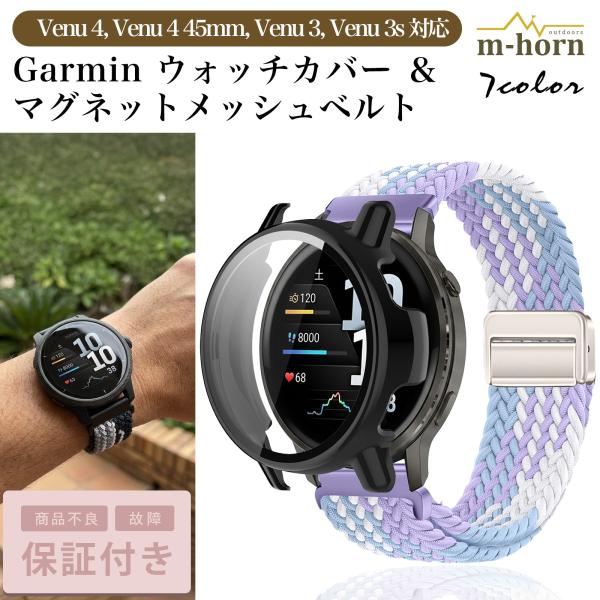 ガーミン スマートウォッチ バンド Garmin venu 4 45mm 3 3s ベルト ナイロン メッシュ マグネット カバー セット