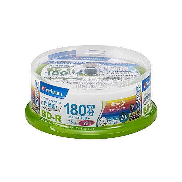 ?バーベイタムVerbatim Verbatim バーベイタム 1回録画用 ブルーレイディスク BD-R 25GB 20枚 ホワイトプリンタブル 片面1層 1-6倍速 VBR130RP20SV1