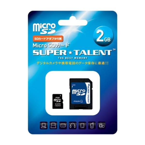 SUPER TALENT スーパートレント マイクロsdカード MicroSDカード class4 SDカード変換アダプタ付 2GB (ST02MSDA)
