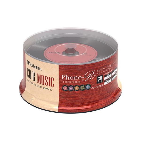 バーベイタム 音楽用CD-R 80分 30枚パック5色レコードデザインPhono-R Verbatim AR80FHX30SV7 返品種別A