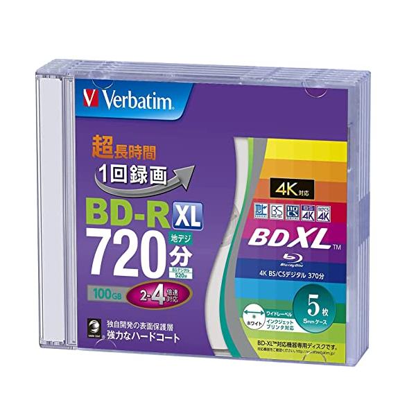 Verbatim バーベイタム 1回録画用 ブルーレイディスク BD-R XL 100GB 5枚 ホワイトプリンタブル 片面3層 2-4倍速 V