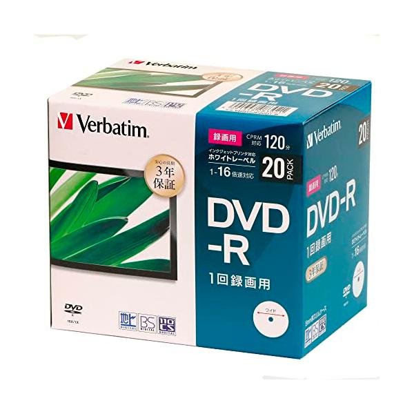 Verbatim 1回録画用 DVD-R CPRM 120分 20枚 5mmプラケース ホワイトプリンタブル 片面1層 1-16倍速 3年 VHR
