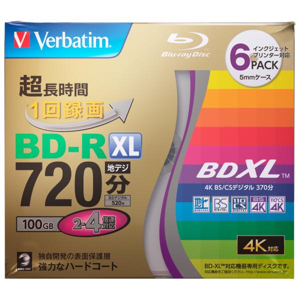 バーベイタム 4倍速対応BD-R XL 6枚パック100GB ホワイトプリンタブル Verbatim VBR520YP6VTO 返品種別A