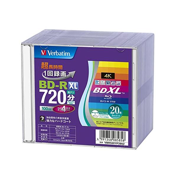 バーベイタム (Verbatim) 1回録画用 ブルーレイディスク BD-R XL 100GB 20枚 5mmプラケース ホワイトプリンタブル