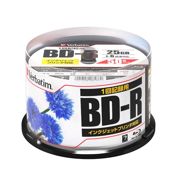 Verbatim バーベイタム 1回録画用 ブルーレイディスク BD-R 25GB 50枚 インクジェットプリンタ対応 ホワイト 片面1層 1-6倍速 DBR25RPP50