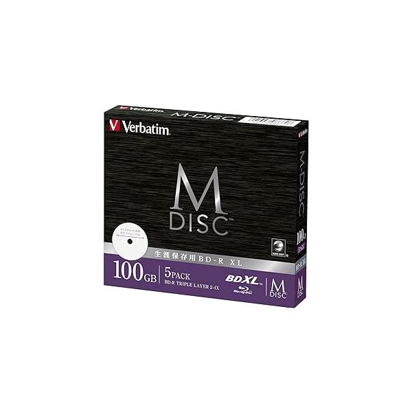 - Verbatim DBR100YMDP5V2 BD-R XLデータ用M-DISC 100GB ●生涯保存用ディスク「M-DISC」大切な記録を長く残すために耐久性にこだわったBD-R。生涯保存用ディスク「M-DISC」は、高硬度チタンを採用し、一般的なブルーレイディスクよりも、光・熱・湿度などによる経年劣化に強く、生涯保存・100年以上(※1)データを保存することができる耐久性に優れたハイグレードディスクです。思い出の写真や映像、趣味のデータ、またはビジネスデータの保存に最適です。※1 国際基準規格 ISO/IEC 16963の測定基準に基づく。※ M-DISC対応ドライブでご使用ください。記録したディスクは既存のドライブでも再生が可能です。●高硬度チタン採用・強靭構造で優れた耐久性高強度・高耐久を実現する「チタン」層を追加。チタン層が、ディスクへの水分侵入を強力に防ぎ、熱や湿度変化から記録層を保護し、高精度記録・長期保存を実現します。独自開発のハードコートでキズ・ホコリに強く指紋もキレイに拭き取れます。●対応インクジェットプリンタでレーベル印刷可能ディスクの内径部までインクジェットプリンタ対応なので、オリジナルのディスクが創れます。●パソコンでもレコーダーでも使える地上デジタルで約720分、BSデジタルで約520分、BS/CS 4Kで約370分の録画が可能です。 【仕様】容量:100GB倍速:2-4x枚数:5枚ケース:5mmケースレーベル:IJワイド(白)インデックスカード:有りグリーン購入法適合:適合RoHS指令対応:対応保証期間:1年