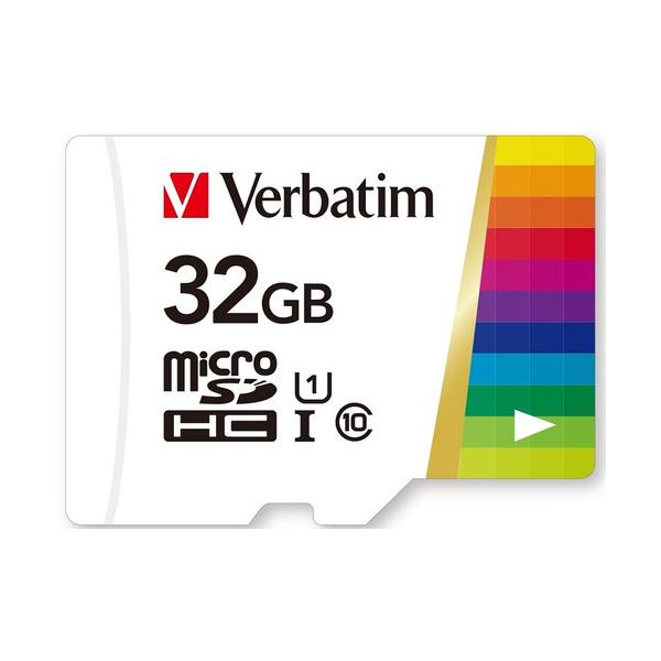 - Verbatim MHCN32GJZV microSDHC UHS-1 /U1 [最大90MB/s] 32GB ●あらゆる用途に使いやすい、高速UHS-1 microSD動画や写真、音楽の保存やゲーム機の容量不足にも対応する高速タイプです●安心の防水設計IPX7準拠JIS防水保護等級7(IPX7)に準拠した防水仕様●使って楽しい、カラフルカードデザイン特徴的なバーベイタムレインボーカラーデザイン。他のカードとも見分けやすく便利です。●世界が認める、信頼のバーベイタム。Verbatim(バーベイタム)は、データストレージ技術ブランドとして、いまから50年以上前の1969年に、アメリカ・カリフォルニア州で誕生しました。Verbatimとはラテン語から生まれたことばで、「一語一句そのままに」という意味。正確にデータを記録するという思いが込められています。 【仕様】カードタイプ:microSDHCカードインターフェース:UHS-1スピードクラス:Class10容量:32GB