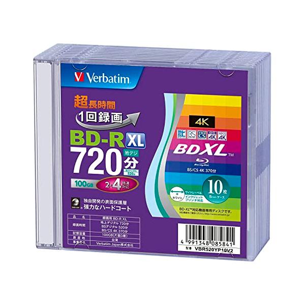 「Verbatim バーベイタム 1回録画用 ブルーレイディスク BD-R XL 100GB 10枚 5mmプラケース ホワイトプリンタブル 片面」