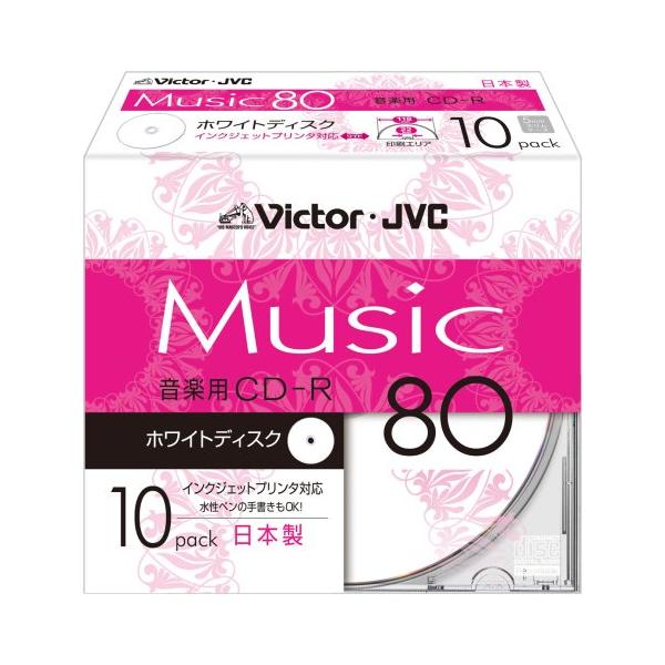 Victor 音楽用CD-R 80分 ホワイトプリンタブル 10枚 日本製 CD-A80PR10