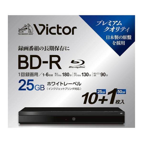 Victor(ビクター) 1回録画用 ブルーレイディスク BD-Rx10枚&BD-R DLx1枚 ホワイトプリンタブル 25GBx10 50GBx1 1-6倍速 10+1枚スリムケース VBE1326NP11J6