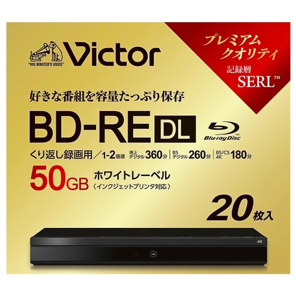 ブルーレイディスク BD-RE DL 50GB くり返し録画用 20枚パック VICTOR ビクター 片面2層 1-2倍速 ホワイトプリンタブル 5mmスリムケース入り VBE260NP20J6 ◆宅