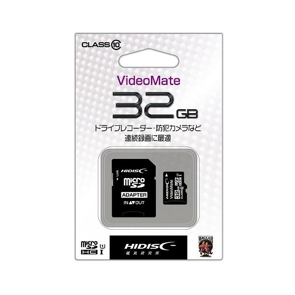 - 【メール便対応可5個まで】 HDMCSDH32GCL10 HIDISC VideoMate microSDHCカード 32GB CLASS10 UHS-1対応 SD変換アダプタ/ケース付き ドライブレコーダー・防犯カメラなどに最適。