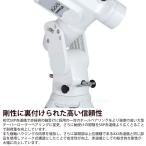 ■極軸傾斜角範囲:高度0〜70°(微動範囲±15°)、目盛5°間隔、3段階使用可(高緯度、中緯度、低緯度対応)ダブルスクリュー式微動ネジ付:1回転約0.7°