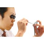 【目のくぼみに挟んで使用するハンズフリールーペ!】目のくぼみに挟んで使用する倍率5倍の高倍率ルーぺです。