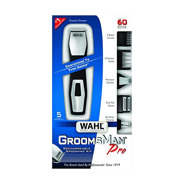 【並行輸入品】 シェーバー 髭剃り バリカン カミソリ Wahl グルームズマンプロ オールインワン充電式グルーミングキット ブラックシルバー 9855-300