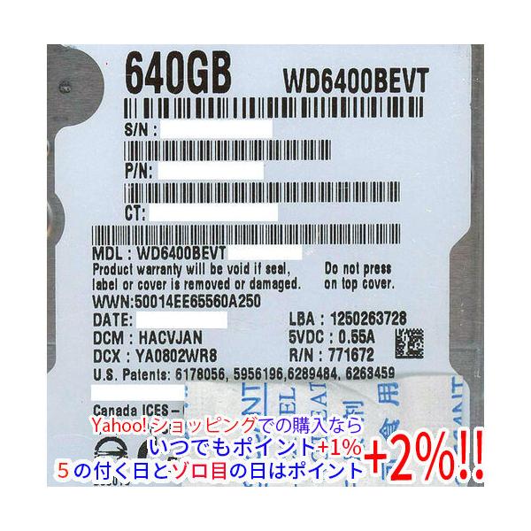 Western Digital製HDD WD6400BEVT 640GB 9.5mm