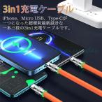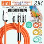 充電ケーブル 3in1 180度 回転 iPhone USB Type-C 1.2m 2m 急速充電 充電器 USBケーブル