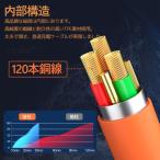 ケーブル内部には高純度の銅線を120本使用し、安定した電流供給と高速充電を実現。外装には耐久性の高いTPE素材を採用し、柔軟性と耐久性を兼ね備えており、折り曲げや引っ張りにも強く長期間使用しても断線しにくい構造です。また端子部分はアルミニウム合金を使用しており、酸化やサビに強く高級感ある仕上がりになっています。