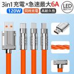 3in1急速充電ケーブル 120W 最大6A 高速データ転送 LEDライト付き 高耐久TPE USB TypeC iPhone MicroUSB スマホ タブレット モバイルバッテリー対応