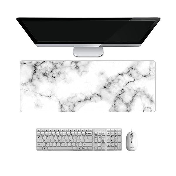 NOEAMOUR マウスパッド 大型 大理石 ゲーミングマウスパッド 光学マウスパッド ロング 800x300x ホワイト