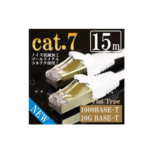 LANケーブル cat7 15m ストレート フラット カテゴリー7 ホワイト ゴールドメタルコネクタ