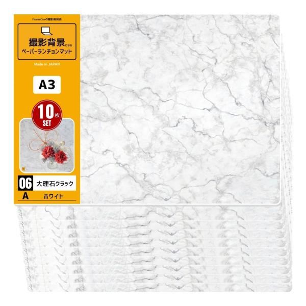 FrameCue 10枚セット 06大理石クラックAホワイト(1柄×10枚)撮影背景になるペーパーランチョンマット A3 背景紙 ペーパーランチョンマット 撮影