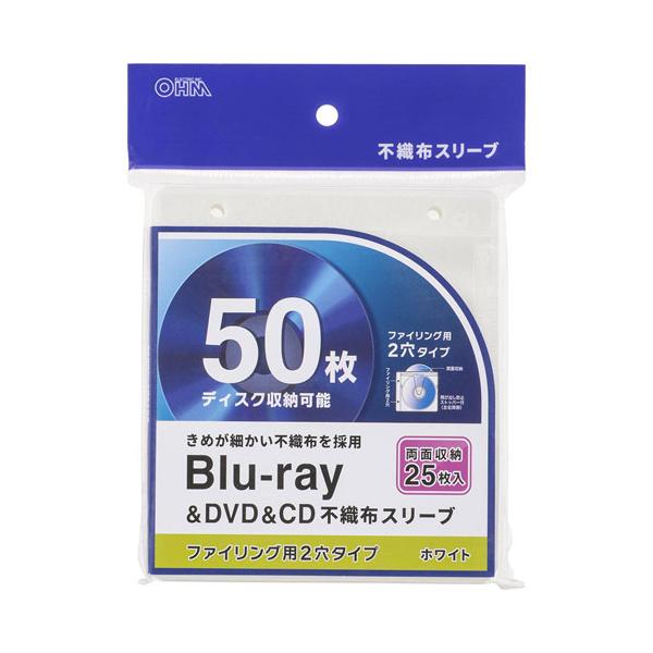 オーム電機 Blu-ray&DVD&CD不織布スリーブ 両面収納タイプ 25枚入 ホワイト OA-RBR50-W