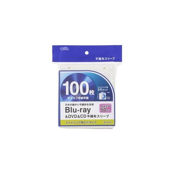 オーム電機 OA-RBR100-W Blu-ray&DVD&CD不織布スリーブ 両面収納タイプ50枚入 ホワイト