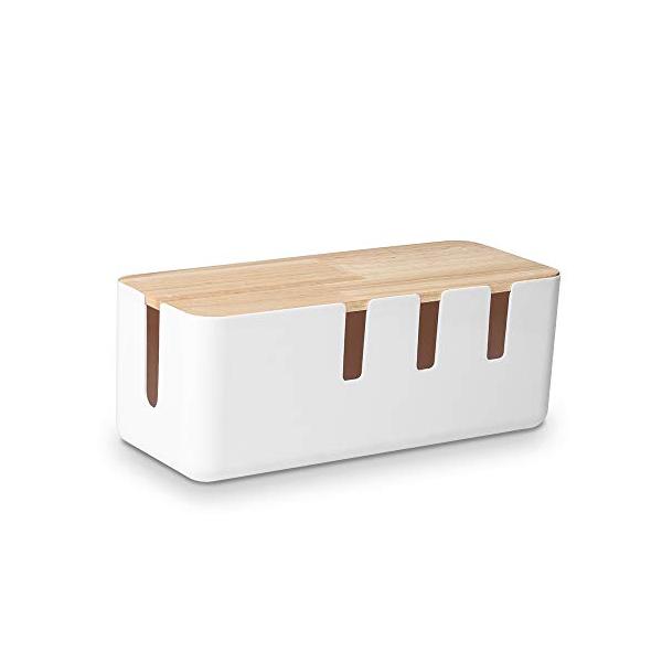 Baskiss ケーブルボックス テーブルタップ収納ボックス 天然木&樹脂製 ホワイト
