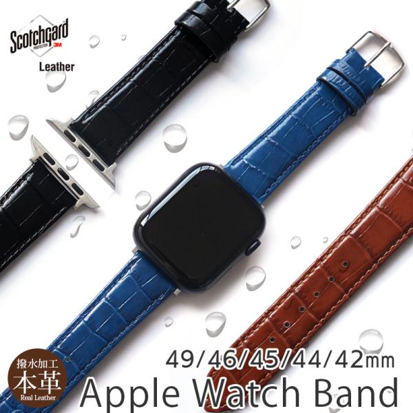 アップルウォッチ バンド Ultra 本革 クロコダイル柄 撥水 スコッチガード BAMBI AppleWatchベルト 革 レザー Apple Watch 49 46 45 44 42 交換ベルト レザー