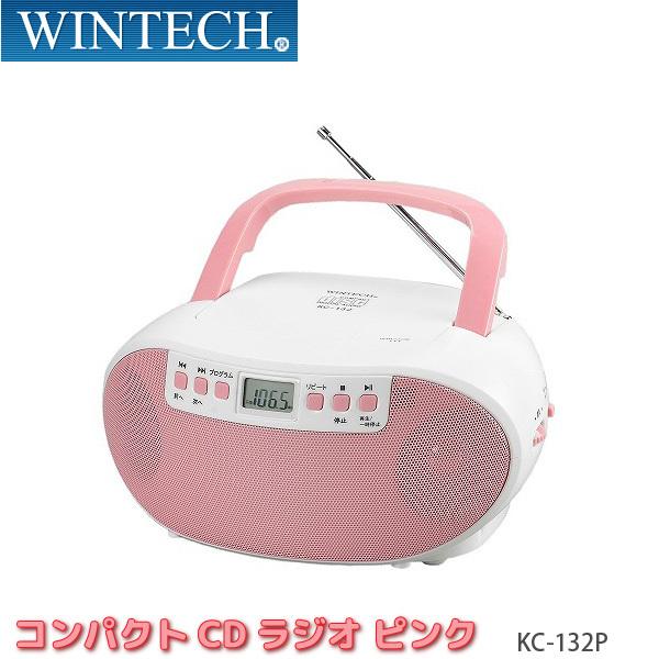 WINTECH CDラジオ KC-132P ピンク CDプレーヤー FMワイドバンド対応 AC電源 アルカリ乾電池 2電源方式 AUXIN端子搭載 外部音声入力端子