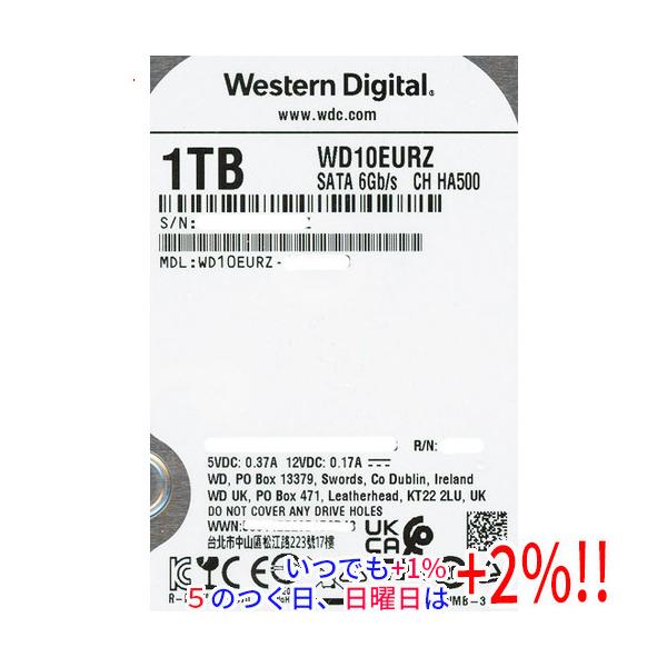 【いつでも+1%!5のつく日と日曜日は+2%!】【爆買】Western Digital製HDD WD10EURZ 1TB SATA600