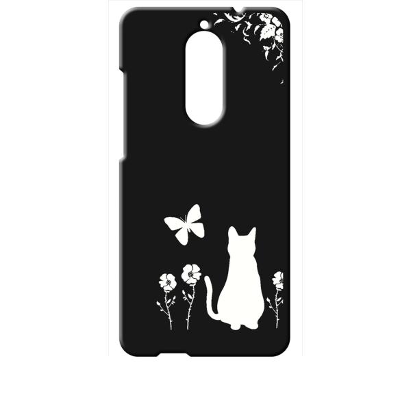 Wiko VIEW ブラック ハードケース 猫 ネコ 花柄 a026