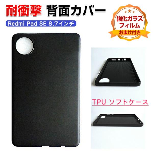 シャオミ リドミ パッド SE 8.7型用の TPU素材 ケース 耐衝撃 薄型 CASE 8.7インチ ソフトケース タブレット 背面カバー 強化ガラスフィルムおまけ付き