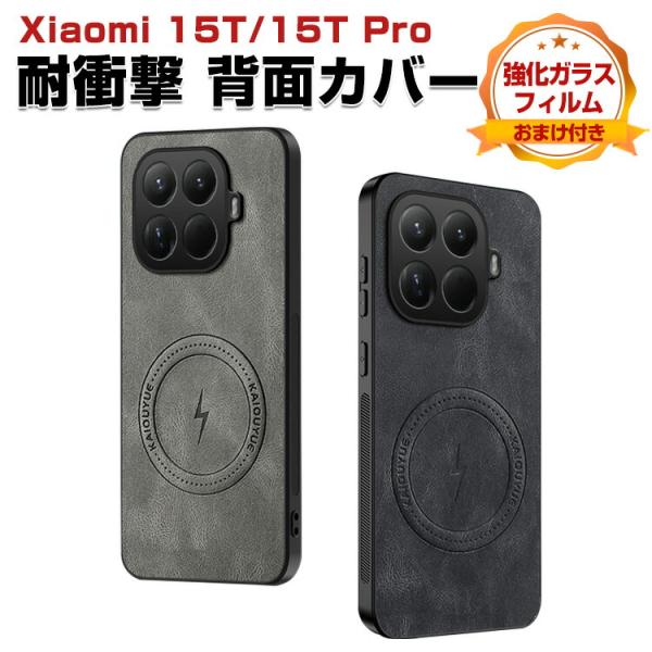 シャオミ Xiaomi 15T 15T Pro用の耐衝撃 TPU+PUレザー素材 マグネット吸引機能付き 人気 おすすめ ソフトカバー ケース 背面カバー CASE 強化ガラス付き