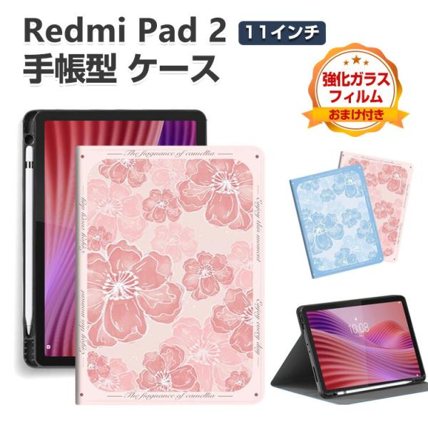 - Xiaomi Redmi Pad 2 11インチ ケース 耐衝撃 カバー 花柄 綺麗な 鮮やかな 多彩 タブレット保護 スタンド機能 便利 リドミ パッド 2 手帳型ケース 人気 おすすめ おしゃれ Redmi Smart Penの収納機能 持ちやすい 汚れ防止 お洒落な ケース 強化ガラスフィルム おまけ付き