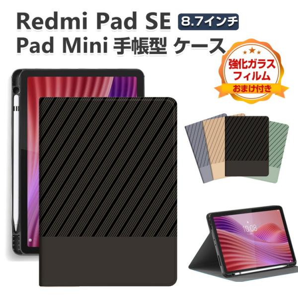 - Xiaomi Pad Mini 8.8インチ Redmi Pad SE 8.7インチ ケース 耐衝撃 カバー 綺麗な 鮮やかな 多彩 タブレット保護 スタンド機能 Redmi Smart Penの収納機能 便利 手帳型ケース 人気 おすすめ おしゃれ 汚れ防止 お洒落な ケース 強化ガラスフィルム おまけ付き