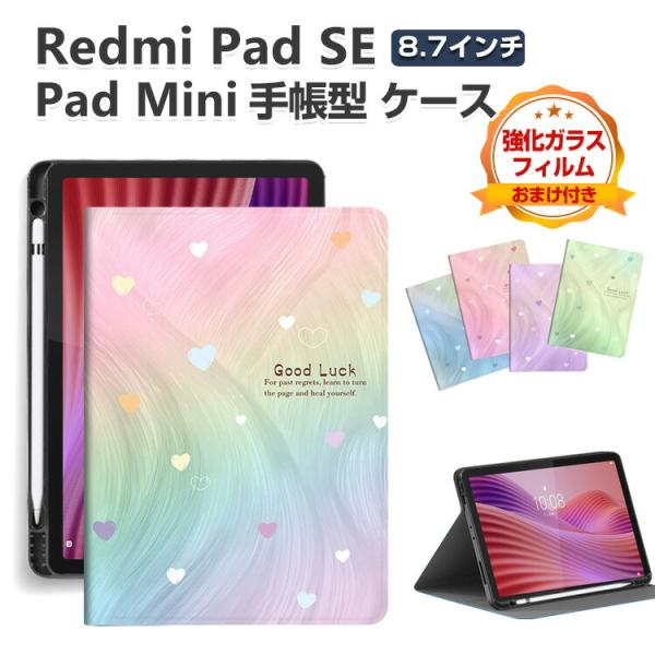 - Xiaomi Pad Mini 8.8インチ Redmi Pad SE 8.7インチ ケース 耐衝撃 カバー 綺麗な 鮮やかな 多彩 タブレット保護 スタンド機能 Redmi Smart Penの収納機能 便利 手帳型ケース 人気 おすすめ おしゃれ 汚れ防止 お洒落な ケース 強化ガラスフィルム おまけ付き
