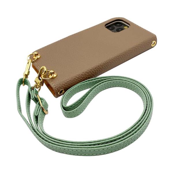 Redmi 12C シャオミ スマホショルダー(手帳グレージュ×ストラップ:アイスグリーン)カバー 手帳 くすみカラー