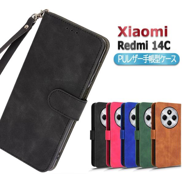Xiaomi Redmi 14C スマホPUレザーカバー ケース 手帳型 マグネット ベルト 定期入れ ポケット 全面保護 いい手触り シンプル ストラップ付 シャオミ レッドミ14C