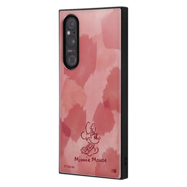 (C) Disney 個性的な四角いフォルムと、衝撃に強いTPU素材の側面、薄くて軽く透明度の高いPCパネル を背面にセットした Xperia 1 V 用 耐衝撃ケース KAKUハイブリッド。端末側面保護、衝撃吸収エアクッション付。背面パネルには『ディズニーキャラクター』のデザインがプリントされ、スマートフォンを鮮やかに彩ります。キャラクター名: ミニー ( ミニーマウス )ストラップホール付 ワイヤレス充電対応 指紋認証対応 Minnie Mouse みにーまうす ネズミ ねずみ レッド 赤 手書き風 大人可愛い Walt Disney でぃずにー