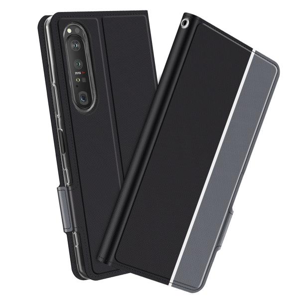 - 【送料無料】Xperia 10 III SO-52B SOG04 スマホケース 手帳型ケース カバー ツートンカラー ストラップ付き ブラック&グレー