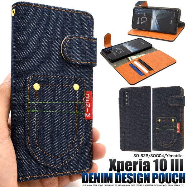 Xperia 10 III SO-52B SOG04 10 III Lite XQ-BT44 ケース 手帳型 ポケットデニムデザイン カバー ソニー エクスペリア スマホケース