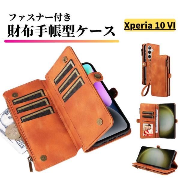Xperia 10 VI ケース 手帳型 レザー お財布 カードケース 軽量 カード収納 ストラップ付 耐衝撃 スマホケース ブラウン