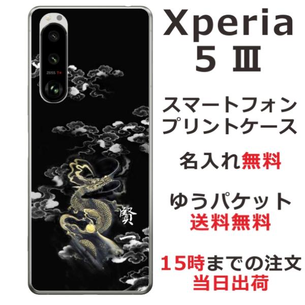 Xperia 5 III SO-53B SOG05 エクスペリア5 III らふら 名入れ スマホケース 和柄 漆黒雲海龍