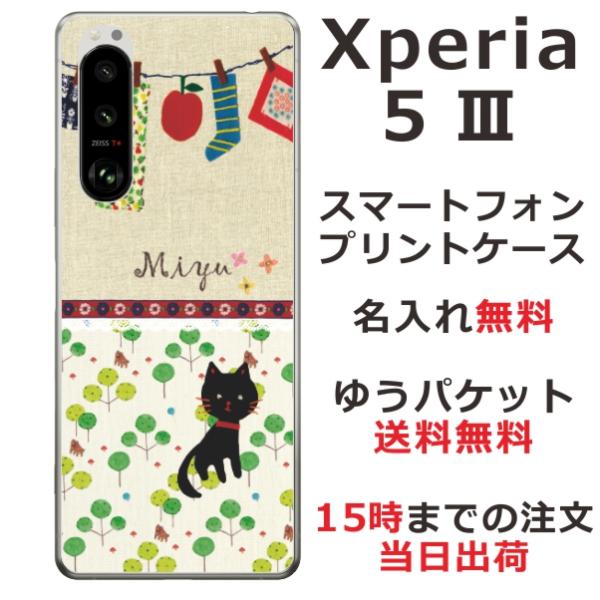 Xperia 5 III SO-53B SOG05 エクスペリア5 III らふら 名入れ スマホケース 黒猫 洗濯物
